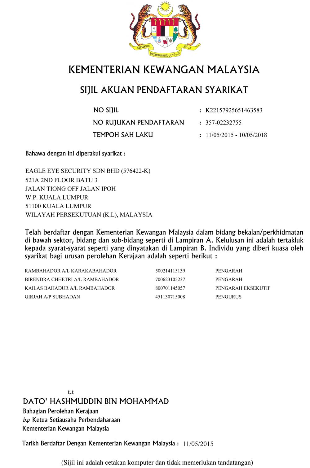 KKM Certificate of Security Guard