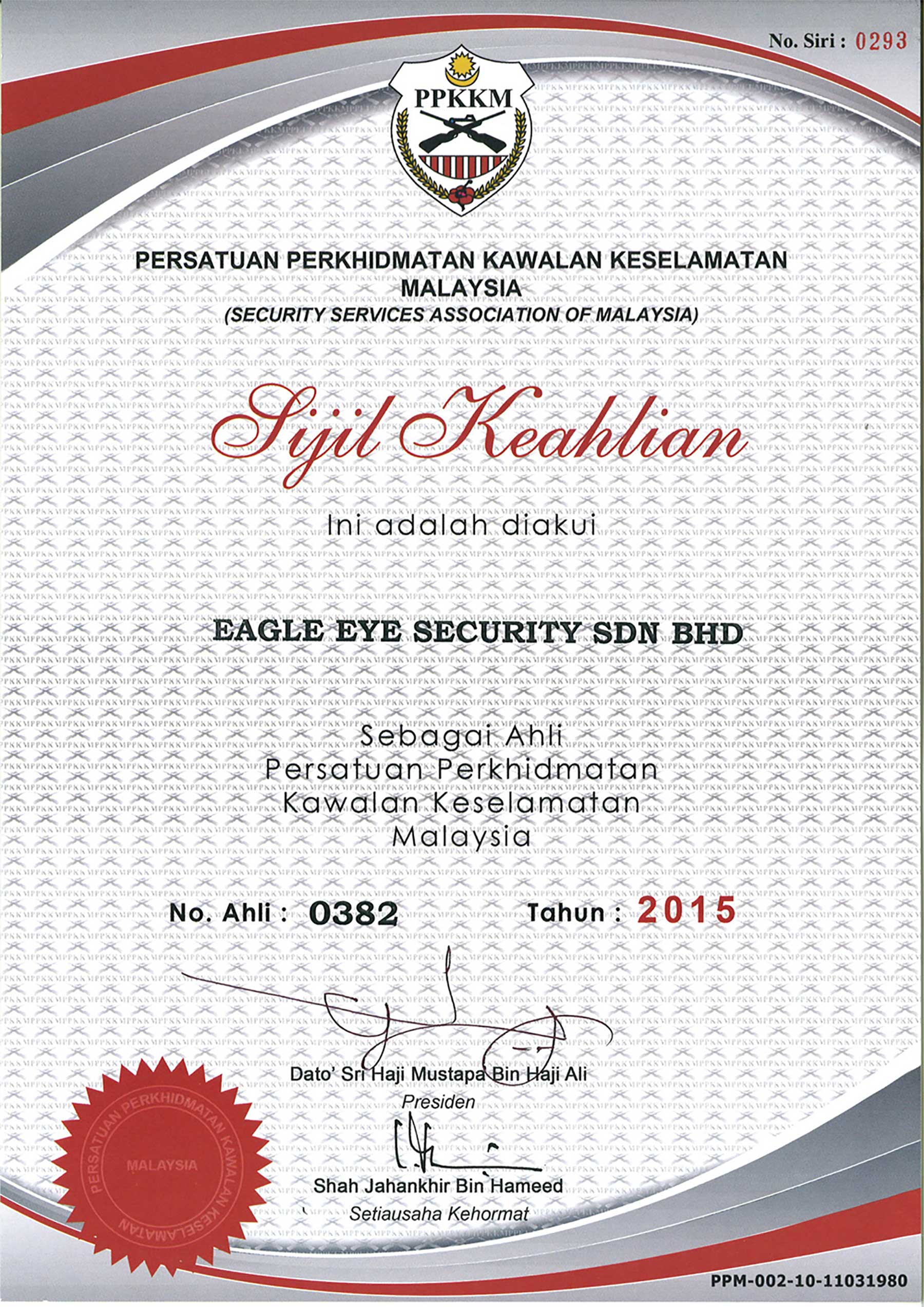 PPKKM Certificate of Security Guard